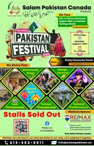 With pride in our hearts and unity in our soul, Community’s leading organization, Salam Pakistan Canada proudly invite you to the 5th Annual Festival Pakistan, an electrifying celebration of our heritage, identity, and the resilient spirit of our nation, Pakistan. Here is programme detail: